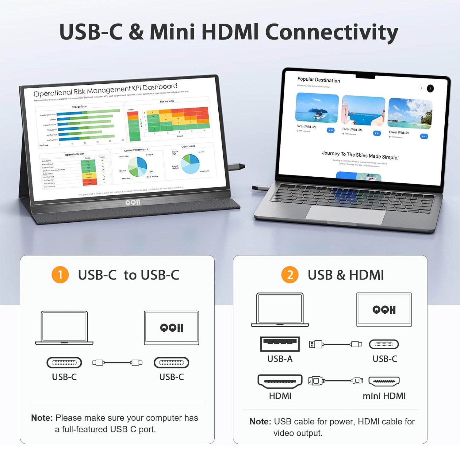 Equipped with both USB-C and HDMI ports, this portable monitor works effortlessly with laptops, smartphones, gaming consoles (Xbox, PS5/4), and cameras. Whether you need a secondary display for work, an extended screen for productivity, or a larger monitor for gaming, QQH Z12-3 delivers high performance and versatility.